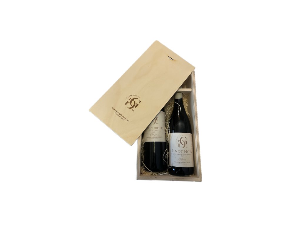 Luxusní dřevěná kazeta na 2 lahve tichého vína s logem G&G Generations. Prodáváme pouze s víny z řady G&G Generations.