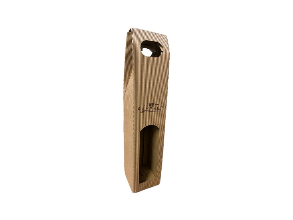 Papírová kazeta na 1 lahev s logem GRMOLEC- rodinné vinařství.
