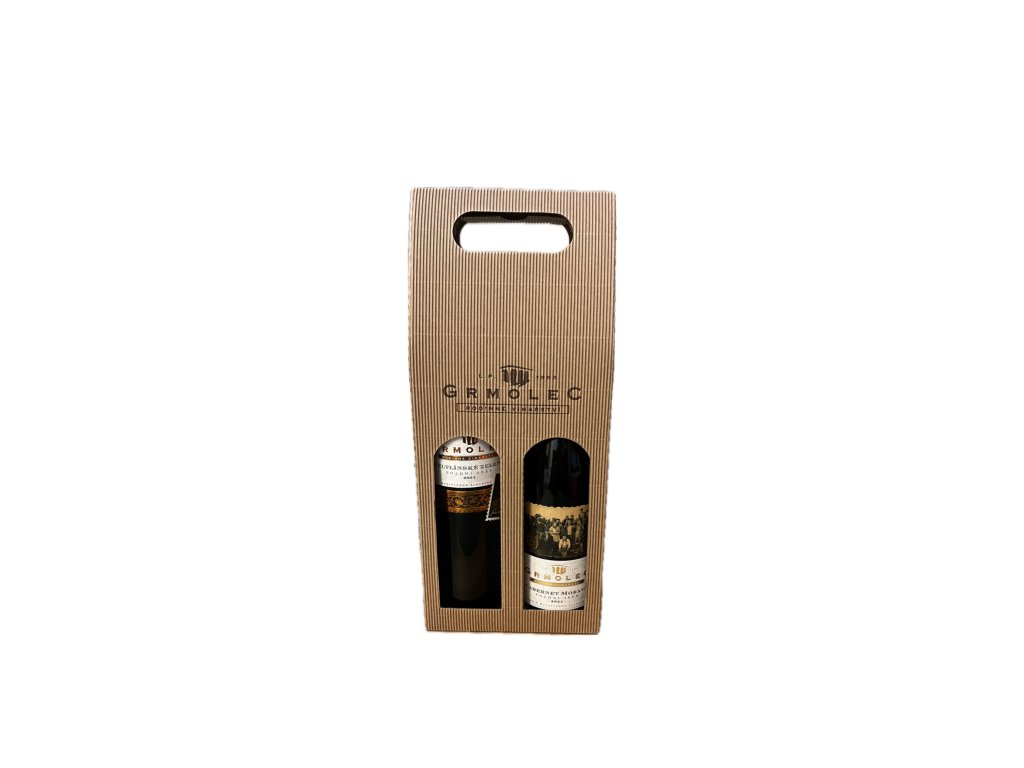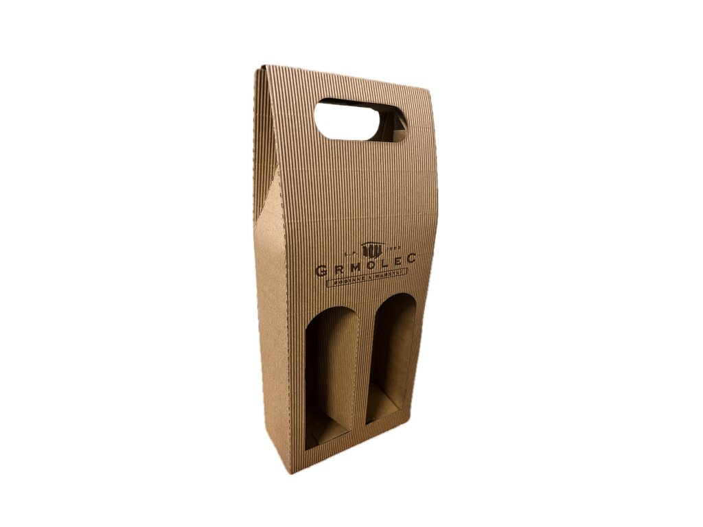 Papírová kazeta na 2 lahve s logem GRMOLEC - rodinné vinařství.